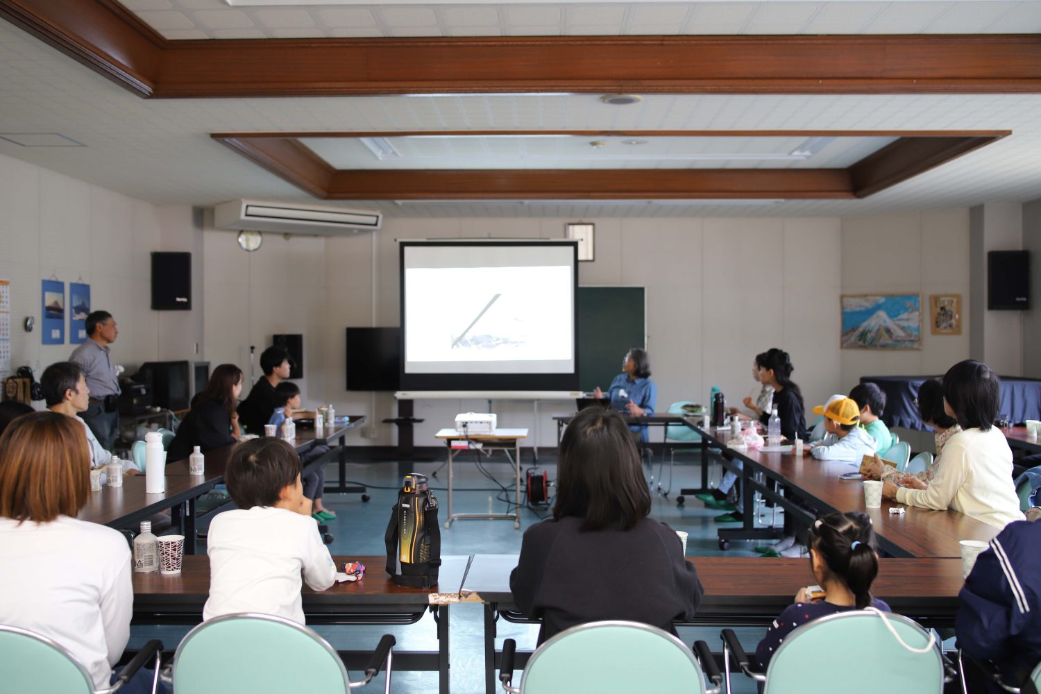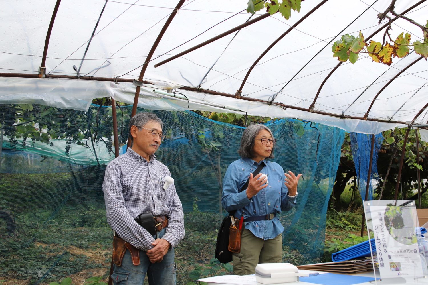 公民館でお弁当を食べたあと、澤登ご夫妻から「ぶどうの一年」についてお話を伺いました。普段は大学の教授もされているお2人。教壇に立つ姿を想像できる時間でした。