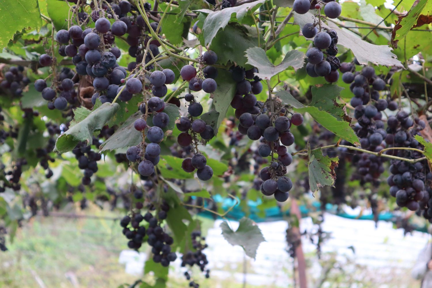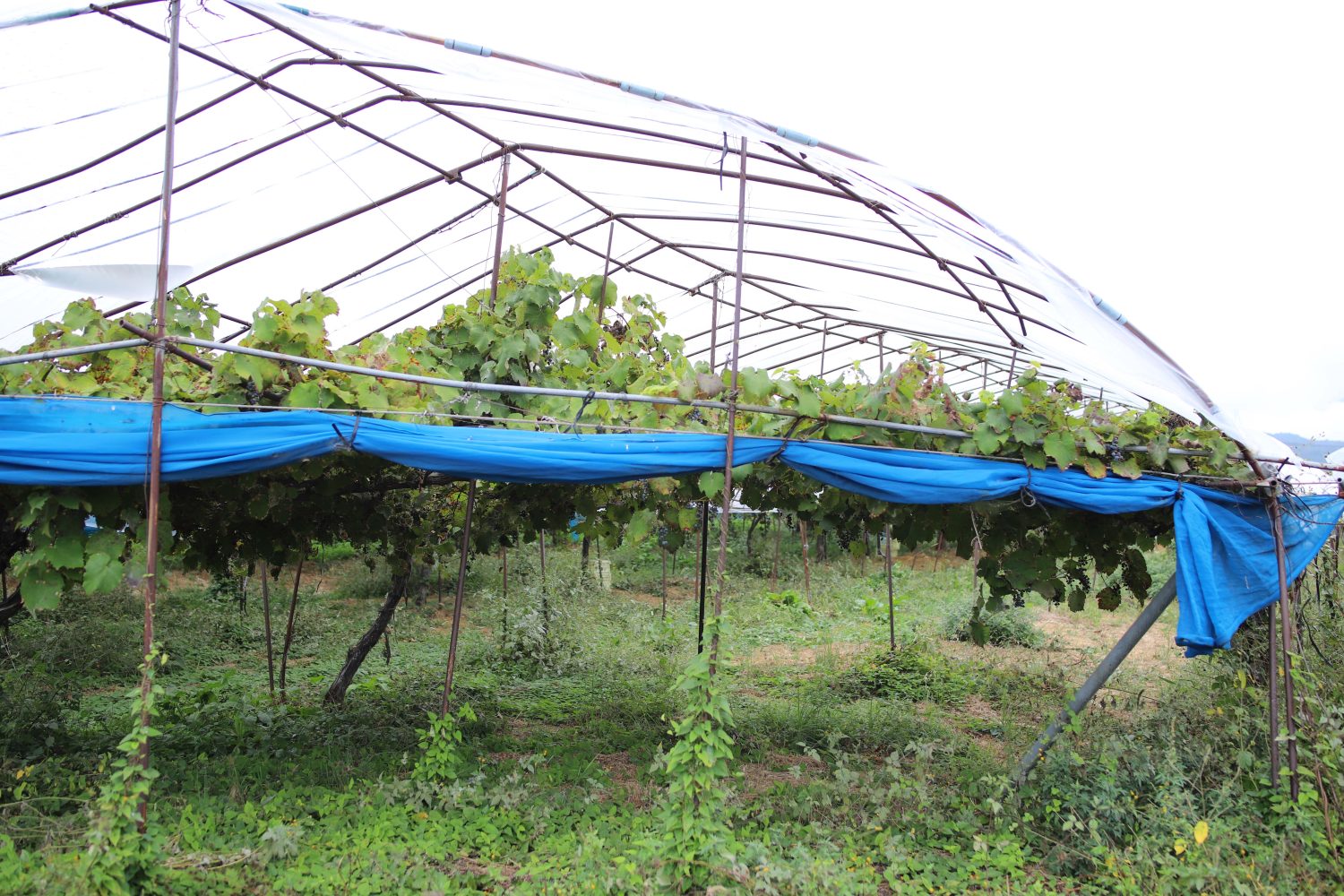 収穫中は雨が降っていましたが、屋根があったので快適に過ごせました。実はこの屋根も、ぶどうの有機栽培においてとても重要な役割を果たしています。