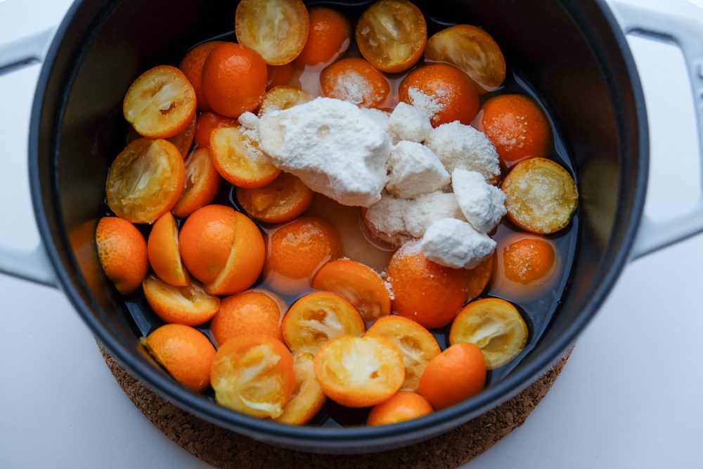 キンカンは、日本の食文化の中で古くから親しまれてきた冬の果実です。甘露煮やはちみつ漬けなど、皮ごと味わう調理法が受け継がれてきたのは、小さな実に宿る香りやほろ苦さを大切にしてきた証でもあります。また、のどをいたわる食材として家庭の台所に並ぶことも多く、季節の手仕事として丁寧に煮含める時間もまた、日本らしい暮らしの風景です。